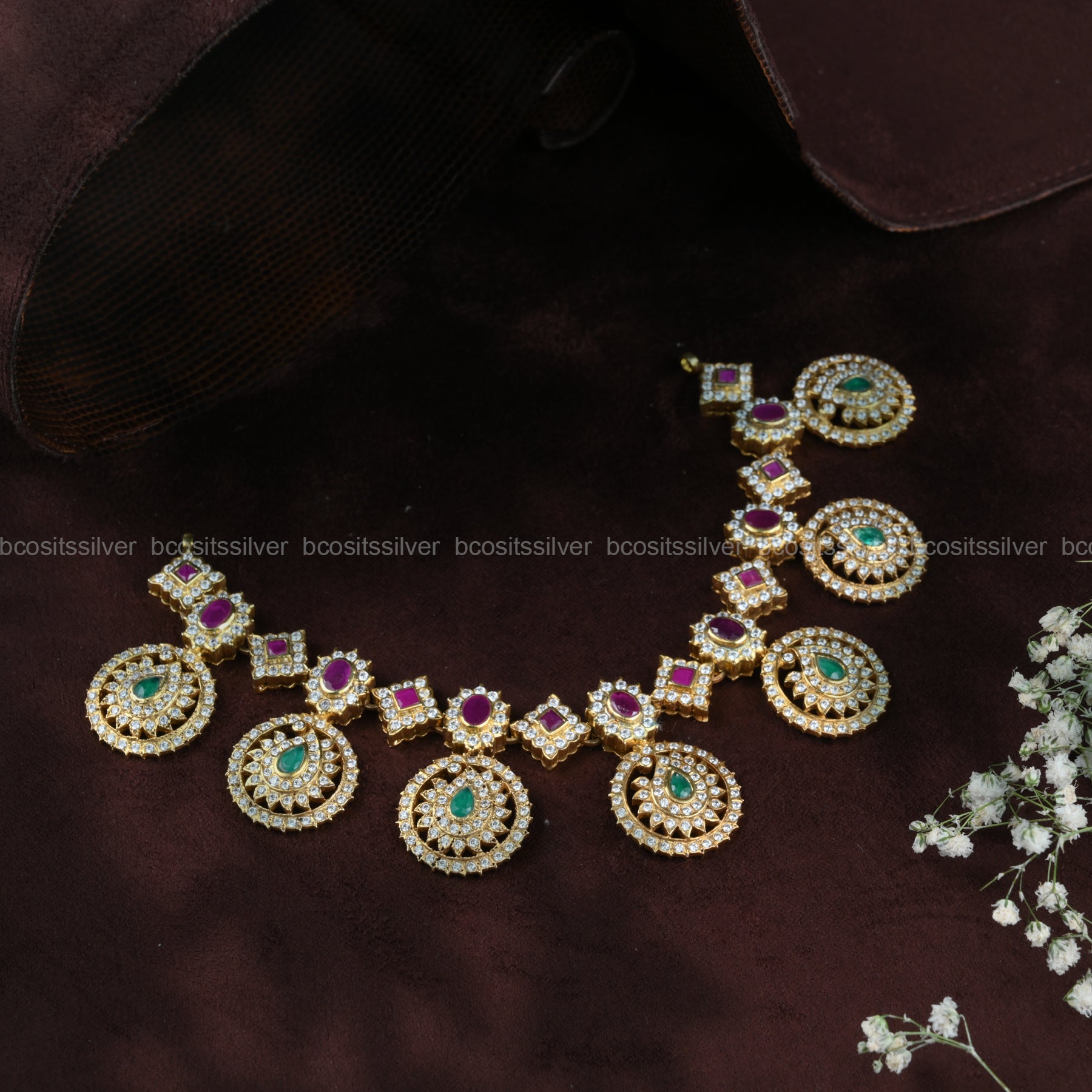 Measurement : Total Length of Neckpiece 8.5 inches, Pendant 1.4 Inches. - Stones / Beads : CZ Stone, Semi Precious Stones.