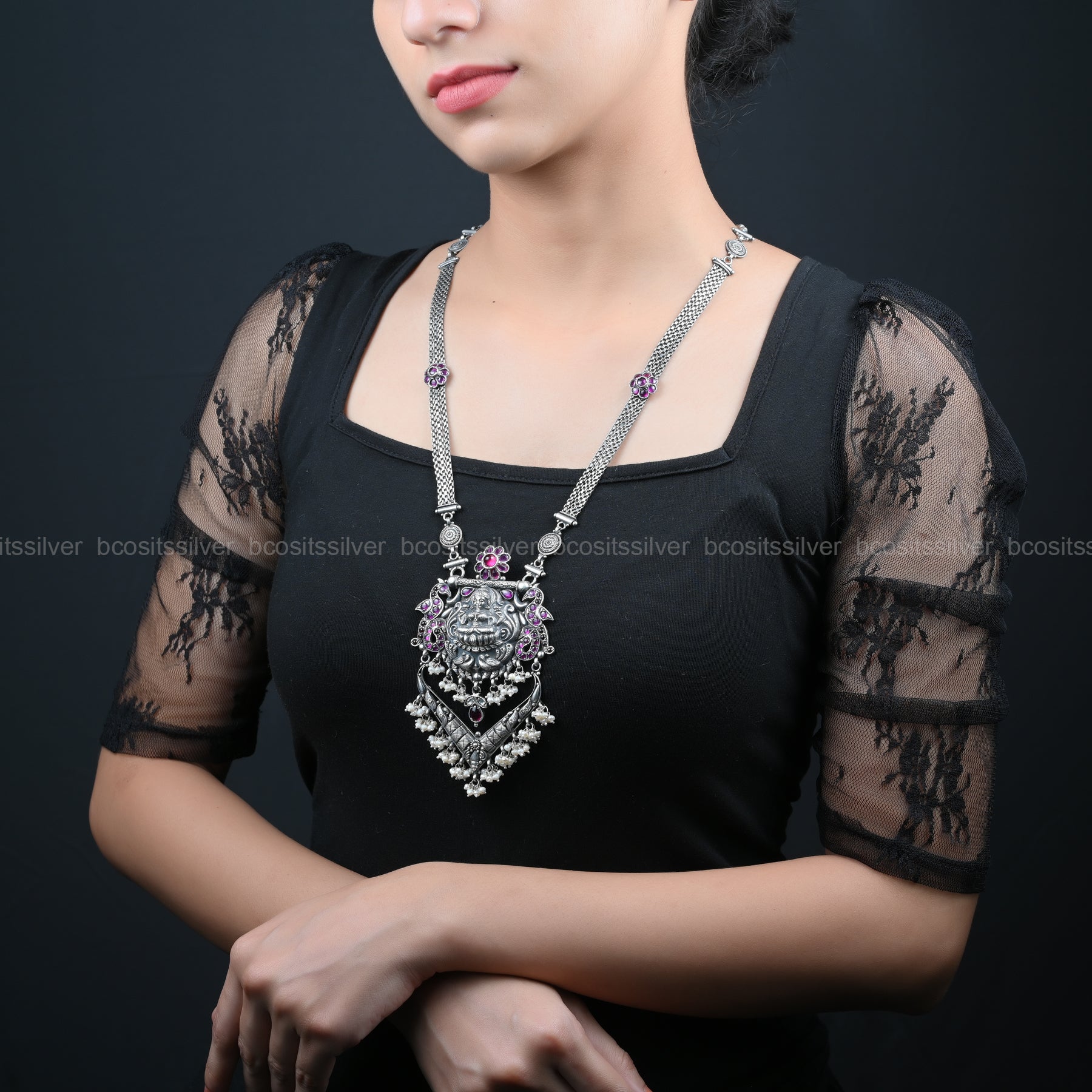 Lord Mahalakshmi Oxidized haram- 1719