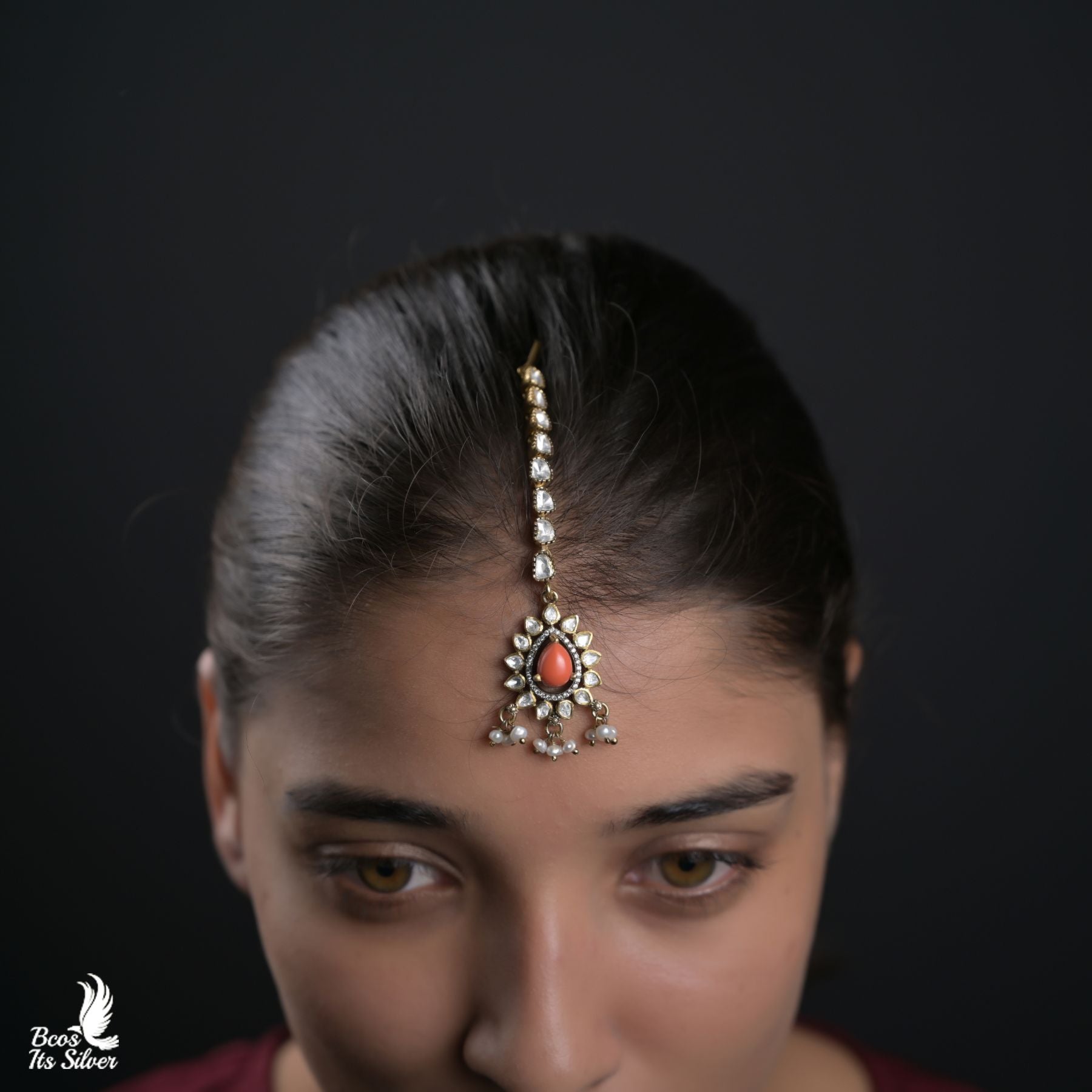 - Pure Silver 92.5 % Tikka, bridal maang patti with silver gold plated balls