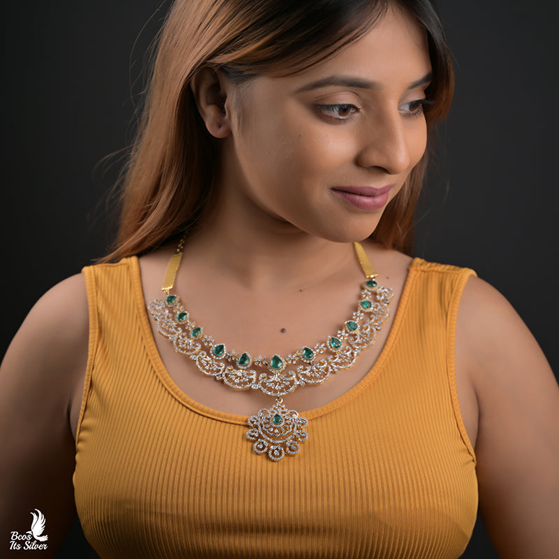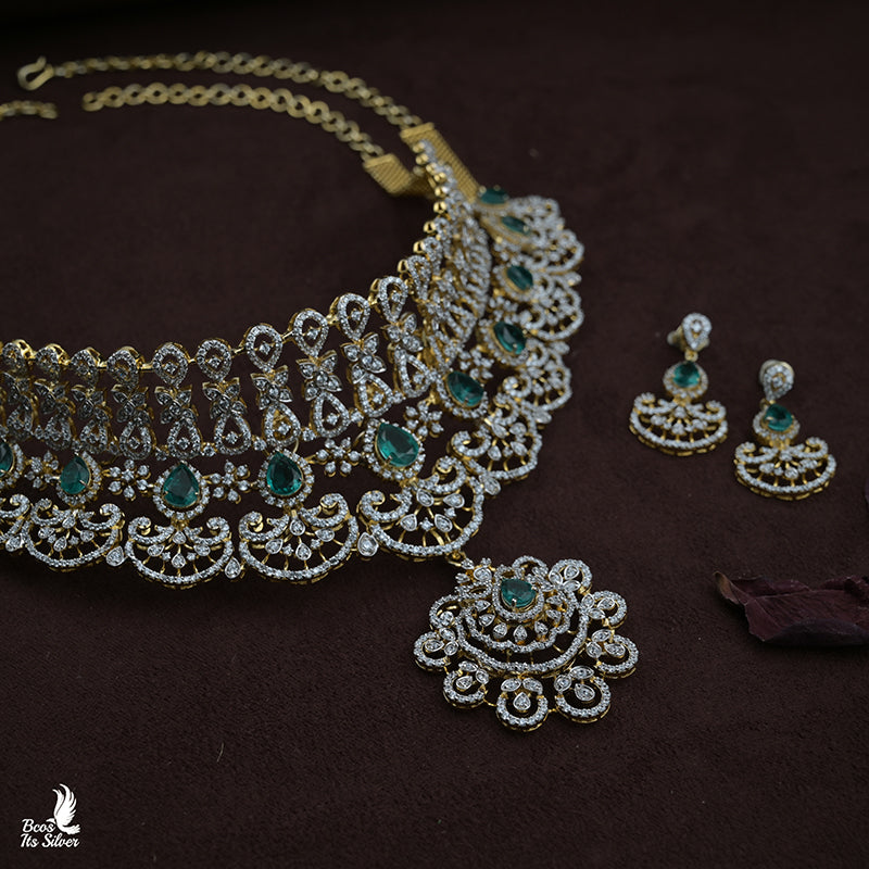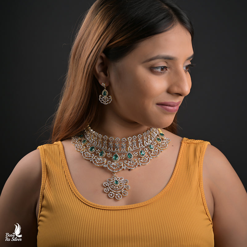 Pure Silver 925 Diamond look alike High Neck choker with earring - 30 WORKING DAYS TO MAKE ON ORDER