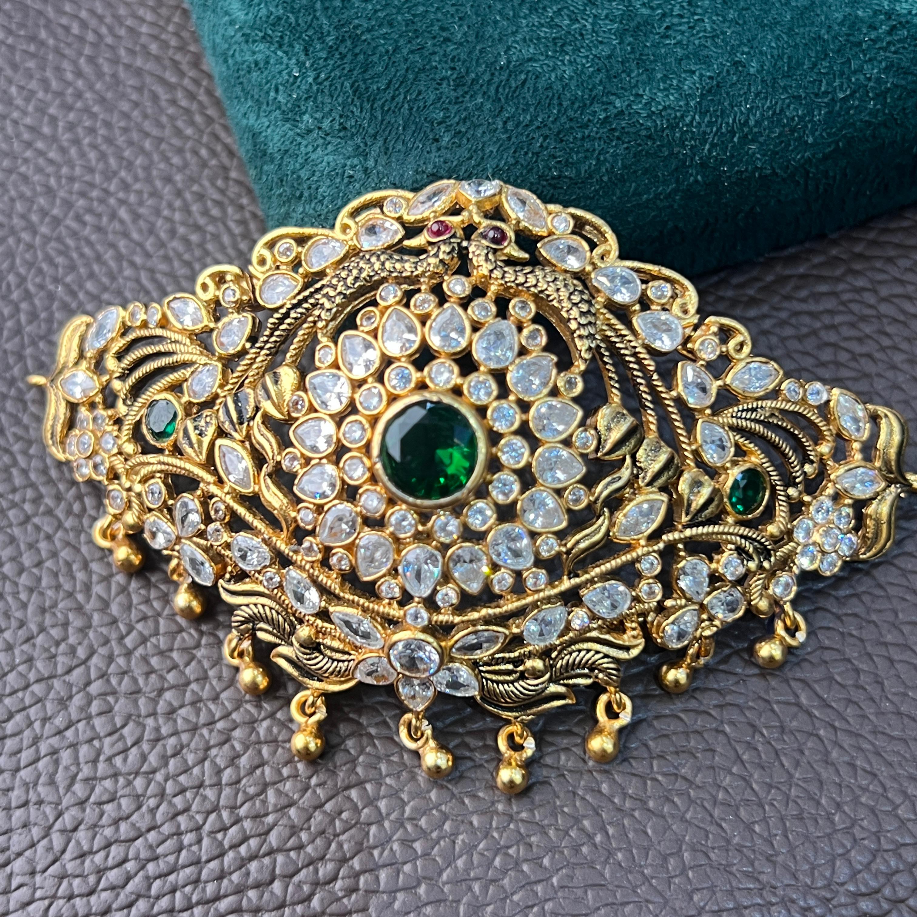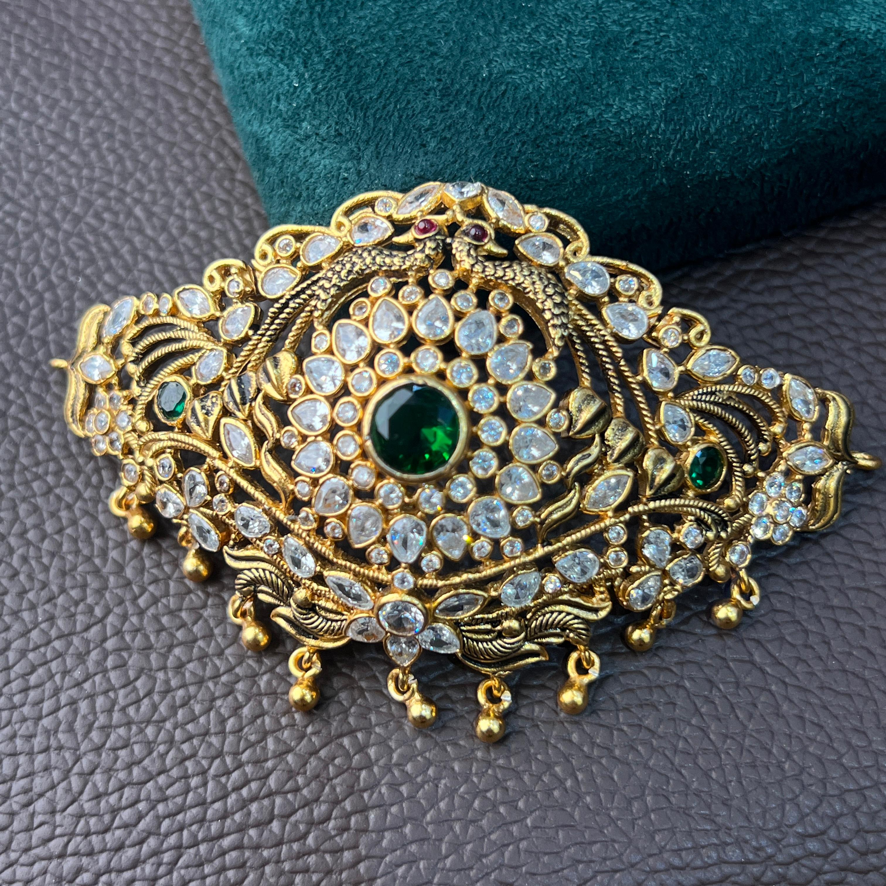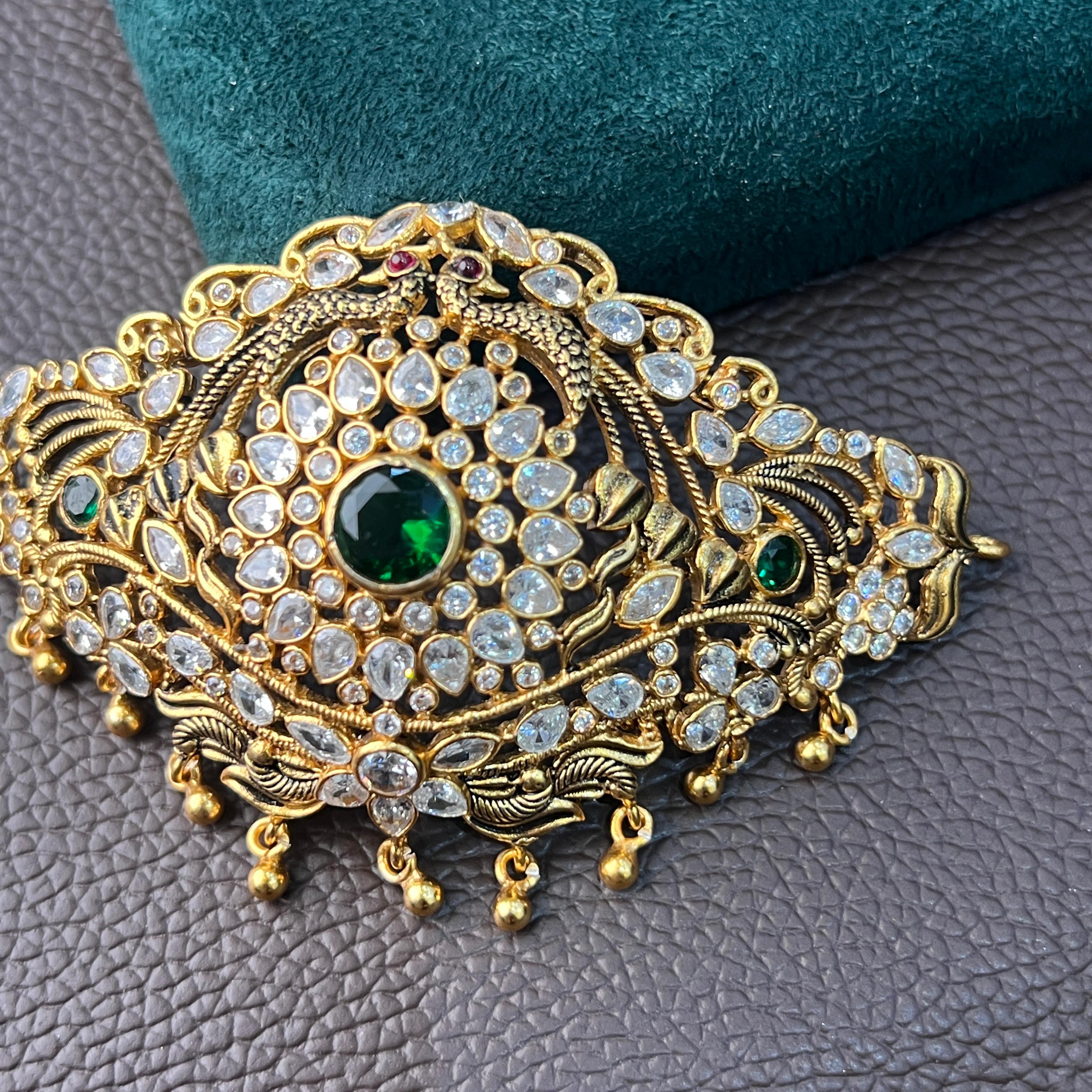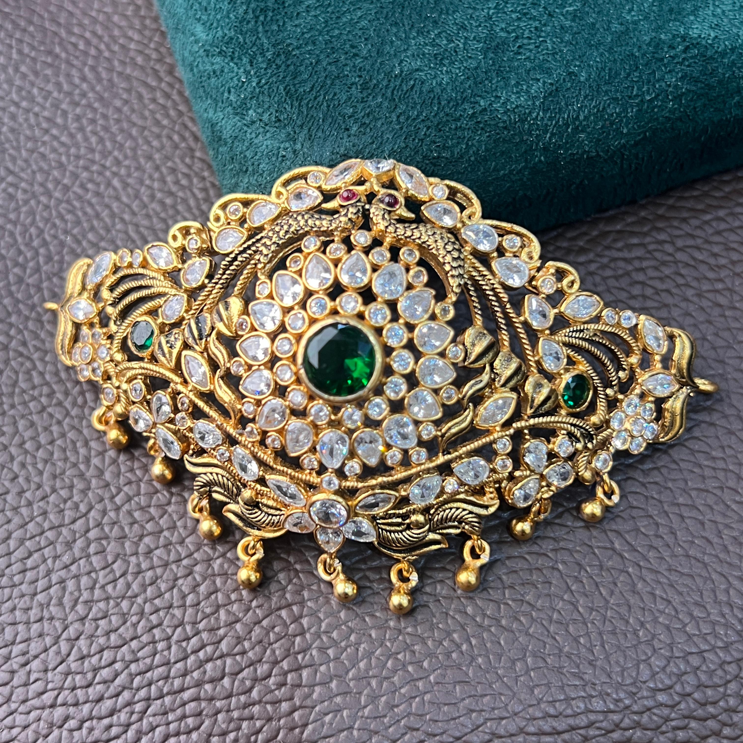 - Stone / Pearl : CZ, and Emerald Stone with Golden beads Pearls