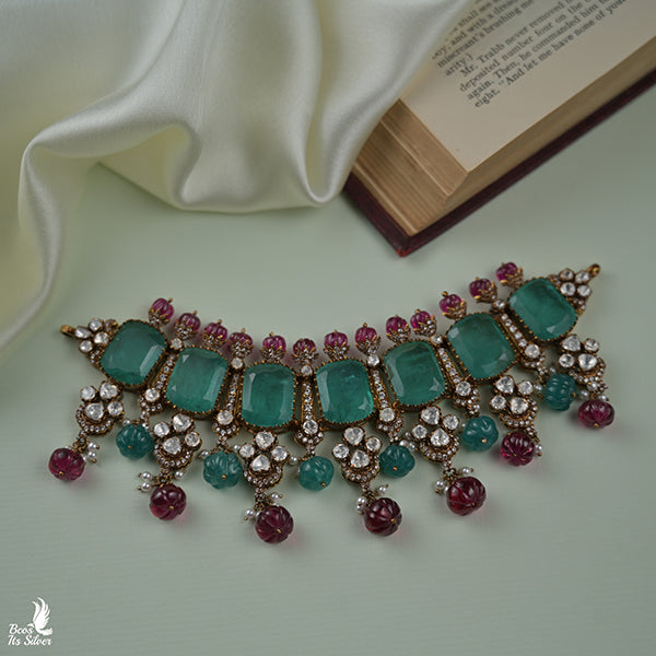Made of Pure Silver 92.5% Purity, Victorian emerald stone Choker